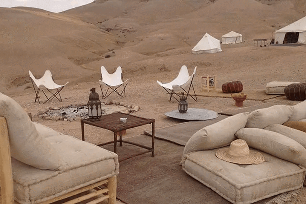 Escape to the Agafay Desert for a scenic camel ride and traditional Moroccan lunch, blending adventure, culture, and stunning landscapes near Marrakech.